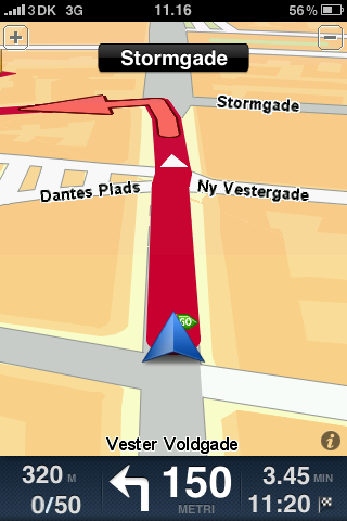 E’ stato impossibile orientarsi tra le strade della capitale danese e della splendida città toscana. Dopo aver impostato l’indirizzo della destinazione – numero civico compreso – il TomTom ha tentato di condurci in tutt’altra direzione. C’è stato più di un tentativo. Vano. Si è comportato decisamente meglio il Navigon MobileNavigator per iPhone, che ha sempre centrato percorso e meta finale.