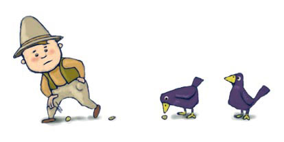 …Pollicino lascia cadere i sassolini dietro di sé; seguendo questa traccia riesce a riportare i fratelli a casa. Il giorno dopo la cosa si ripete, ma questa volta Pollicino ha a disposizione, per segnare il sentiero, solo briciole di pane, che vengono mangiate dagli uccelli.